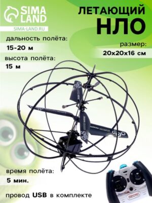 Летающий шар «НЛО». <strong> Удивительное рядом </strong> Познайте космос вместе с летающим шаром «НЛО». Эта волшебная игрушка разовьет координацию движений ребенка, пространственное мышление и воображение. Малыш сможет управлять движениями прозрачной сферы с помощью дистанционного пульта. «НЛО» мгновенно отвечает на команды, маневренно <b> поднимается вверх, опускается вниз, поворачивает направо и налево, летит вперед и назад</b> . Встроенный гироскоп стабилизирует работу устройства: благодаря нему игрушка не сбивается с курса и сохраняет устойчивое положение в воздухе. <b> Обратите внимание</b> <ul> <li> Летающий шар работает от аккумулятора (входит в комплект), а пульт — от шести батареек типа АА (в комплект не входят). </li> <li> Заряжается от пульта управления и USB (провод USB в комплекте). </li> <li> Высота полета: 15 м.</li> <li> Дальность полета: 15-20 м.</li> <li> Время полета: 5 мин.</li> <li> Время зарядки: 40 мин.</li> <li> Количество каналов: 3. </li> <li> Пульт управления: инфракрасный. </li> </ul> Товар предназначен для детей старше 8 лет.