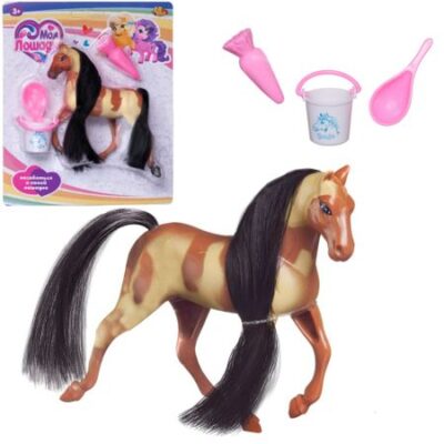 Лошадка — любимая игрушка всех девочек, ведь она такая красивая и добрая, с ней так интересно играть! Игровая фигурка лошадки из серии «Моя лошадка» от бренда ABtoys может стать замечательным дополнением к коллекции игрушечных животных малышки. Девочка будет ухаживать за своей любимой лошадкой, используя предметы ухода, которые входят в состав набора. Лошадка имеет красивый окрас, ее длинную, блестящую гриву можно расчесывать и заплетать в косички. Игрушка имеет гладкую полировку.Игровой набор представлен в ассортименте, 6 видов.Размер лошадки: 10х2,5х9см.Комплектность: лошадка — 1 шт., предмет ухода — 3 шт.Материал: полимерный материал.