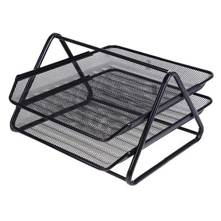 Лоток для бумаг горизонтальный, 2 отделения, в сетку, черный. Лоток для бумаг помогает поддерживать рабочее место в порядке и структурировать большой объем документов. Универсальный дизайн позволяет легко вписаться в интерьер любого пространства.