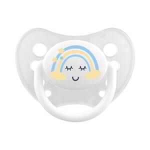 Соска-пустышка с симметричным силиконовым соском предназначена для детей от 6 месяцев. Форма нагубника с отверстиями обеспечивает свободную циркуляцию воздуха для предотвражения появления опрелостей. Указанный возраст является рекомендованным и зависит от индивидуальных особенностей развития ребенка.