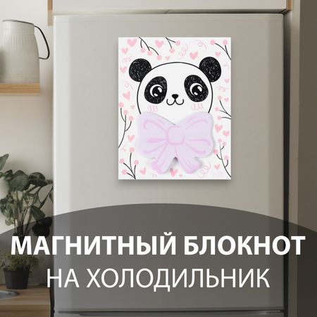Магнит на холодильник с блоком для записей «Панда с бантом», 12.5×15.7 см. Добавьте яркие акценты в вашу повседневную жизнь с нашим очаровательным магнитом с блоком для записей. Оформленный в тематике животного мира, этот магнит с милой пандой в банте станет не только практичным помощником, но и источником положительных эмоций. Он прекрасно подходит как для девушек, так и для женщин, подчеркивая их индивидуальность и любовь к уюту. <b> Преимущества</b> <ul> <li> <strong> Функциональность:</strong> блок из 25 листов предоставляет достаточно места для записи важных заметок, идей и напоминаний, что делает его незаменимым в повседневной жизни.</li> <li> <strong> Уникальный дизайн:</strong> милое оформление с пандой добавляет игривости и радости в ваш интерьер, создавая атмосферу уюта и вдохновения.</li> <li> <strong> Удобство использования:</strong> магнитная основа надежно крепит блок на холодильнике, обеспечивая легкий доступ к заметкам в любое время.</li> <li> <strong> Идеальный подарок:</strong> станет замечательным презентом на 8 марта, день рождения или любой другой праздник, подчеркивая вашу заботу и внимание к близким.</li> <li> <strong> Качество материалов:</strong> изготовлен из бумаги и магнита, что обеспечивает долговечность и надежность в использовании.</li> </ul> Магнит с блоком для записей — это не просто аксессуар, а символ тепла и заботы. Он поможет вам оставаться организованными и добавит яркие моменты в вашу жизнь. Позвольте этому милому элементу стать частью вашего дня и радовать вас каждый раз, когда вы оставляете заметку!
