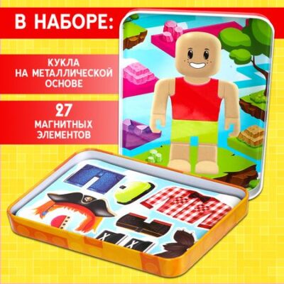 Магнитная игра «Роблики», в жестяной коробке. Ваша принцесса любит модничать? Тогда этот набор станет эффектным подарком для нее! Магнитный набор «Роблики» позволит менять одежду персонажу и создавать разные образы. С ним ребенок не ограничен в выборе стиля и цветовой гаммы — в каждом из 5 образов можно легко комбинировать и менять одежду между собой. <b> Что в наборе</b> <ul> <li> Жестяная коробка-подложка с изображением персонажа, которого нужно наряжать.</li> <li> 27 магнитных элементов: одежда, обувь и аксессуары.</li> <li> Подходит для детей в возрасте от 3 лет.</li> </ul> <b> Играть с набором просто!</b> <ul> <li> Выберите подходящий наряд и аксессуары, а затем приложите их к персонажу. Одежда зафиксируется на ней благодаря магнитной ленте.</li> <li> С этим набором у ребенка получится целых 5 модных образов!</li> </ul> <b> Чем полезны игры с магнитным набором</b> Взаимодействуя с такими игрушками, девочка улучшает мелкую моторику, сообразительность, тренирует фантазию и развивает эстетический вкус.