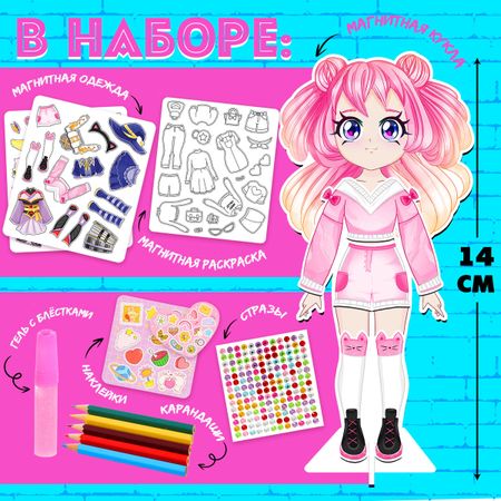 Магнитная игра «Модный домик: Кими». Магнитная игра «Модный домик: Кими» станет увлекательным занятием для детей, любящих создавать свои модные образы и придумывать истории. В комплект входит кукла, семь стильных нарядов, а также аксессуары и украшения для дополнительного декора. Все элементы выполнены на магнитах, что позволяет легко менять одежду и аксессуары, создавая новые образы для куклы. <b> Особенности</b> <ul> <li> Магнитная кукла 14 см с одеждой на магнитах — дети смогут экспериментировать с различными стилями, создавая яркие образы</li> <li> Магнитная раскраска и карандаши — помогут раскрыть творческие способности и развить художественные навыки</li> <li> Гель с блестками и стразы — для дополнительного декорирования одежды и аксессуаров</li> <li> Наклейки для украшения домика и создания индивидуального интерьера</li> <li> Кукольный домик высотой 18 см — компактное пространство для игр, которое можно украсить по своему вкусу</li> </ul> <b> Польза и развивающие элементы</b> Игра с магнитной куклой развивает у ребенка мелкую моторику и координацию движений, а также творческое мышление и воображение. Возможность декорировать наряды стразами и блестками делает процесс игры более интересным и увлекательным, что способствует развитию внимательности и усидчивости. Магнитная игра «Модный домик: Кими» отлично подойдет в качестве подарка на день рождения или любой другой праздник. Она принесет много радости и станет источником вдохновения для маленьких модниц и дизайнеров.