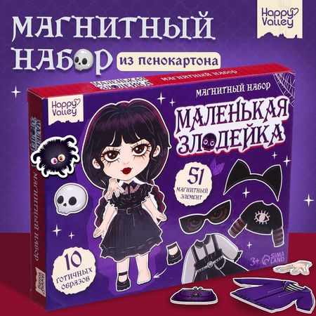 Магнитная игра «Маленькая злодейка» — это отличный способ проявить фантазию. С помощью игры можно создать множество неповторимых образов для куклы. Подарите своей девочке возможность окунуться в волшебный мир моды!В комплект входятМагнитная подложка в виде куклы высотой 21 см.51 предмет одежды и аксессуаров. С ними игра станет увлекательнее и реалистичнее.Подходит для детей от 3 лет.Как игратьПриложите элементы одежды и аксессуаров к магнитной кукле. Детали легко крепятся и снимаются, поэтому создавать образы быстро и просто.Польза игр с магнитным наборомИгра «Маленькая злодейка» развивает творческое воображение, фантазию, мелкую моторику рук, логическое мышление, вкус и чувство стиля.