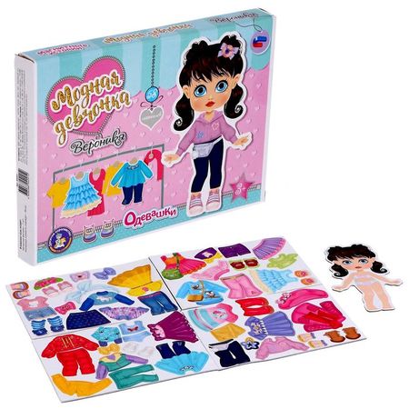 Помогите подобрать наряд модной девчонке Веронике с развивающей настольной игрой «Одевашки». Она простая, но при этом очень увлекательная и не вызовет сложности у ребёнка старше 3-х лет. Собирай образы, меняй стили и создавай свои истории!Игра состоит из 58 магнитных элементов одежды и фигурки куклы Вероники. Все предметы одежды легко фиксируются на фигурке.Как играть?В игре два условных варианта: куклу Веронику можно одевать как по погоде за окном — ребёнок учится различать одежду по сезону, так и по желанию ребёнка — вырабатывая чувство стиля. 4 набора одежды и аксессуаров подойдут для любого случая, а комбинирование деталей гардероба подарит много радостных мгновений малышу!Магнитная игра «Одевашки. Вероника» развивает фантазию, вкус, чувство стиля, логику, а также учит различать цвета и предметы одежды.