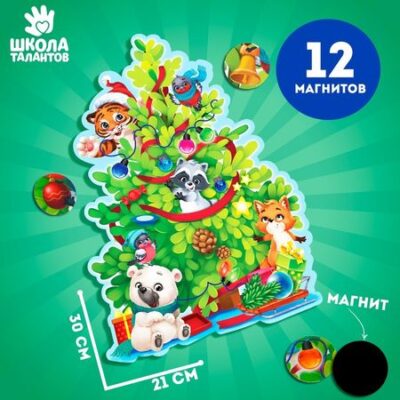 Ёлочка для самых маленьких!Поместите ёлочку на холодильник или играйте на столе. Попросите малыша украсить ёлку, посчитать игрушки. Используйте магнитные элементы в сюжетно-ролевых играх.Придумайте увлекательный сюжет про пушистую красавицу, и ваш малыш непременно ощутит атмосферу волшебного праздника!