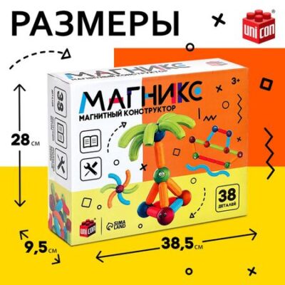 Магнитный конструктор «Магникс», 38 деталей. Магнитный конструктор — это набор, детали которого соединяются как по волшебству. Под действием магнитного поля элементы притягиваются друг к другу, открывая неограниченный простор для экспериментов. <b> Особенности конструктора</b> <ul> <li> Яркие детали в виде палочек и шариков.</li> <li> Магниты легко притягиваются друг к другу, образуя прочные конструкции.</li> <li> Элементы изготовлены из качественного пластика с использованием безопасных красителей.</li> </ul> <b> Увлекательно и полезно!</b> Конструирование способствует многогранному развитию детей. <ul> <li> Пространственное мышление — ребенок познает соотношения элементов: справа, слева, выше, ниже.</li> <li> Конструкторские способности — осознание, каким образом создаются различные объекты.</li> <li> Образное мышление — стиль мышления, который отвечает за создание определенного образа, формирующегося в представлении ребенка.</li> <li> Мелкая моторика, глазомер — работая с конструктором, малыш развивает мелкие мышцы руки, учится соизмерять мышечное усилие, тренирует глаза.</li> <li> Творческие способности и воображение.</li> </ul>