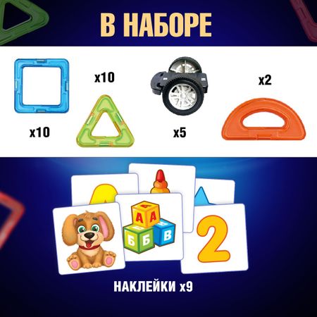 Магнитный конструктор Magical Magnet, 45 деталей, детали матовые. Конструктор Magical Magnet, это уникальный набор, позволит построить самые разнообразные модели! <b> Легко и весело собирать!</b> <ul> <li> Яркие и красочные деталию в видео геометрических фигур.</li> <li> Магниты легко притягиваются друг к другу, образую прочные конструкции.</li> <li> Развитие мелкой моторики, воображение и мышления.</li> </ul> Конструктор с магнитными деталями это отличный стартовый комплект — имеющихся деталей будет достаточно для постройки разнообразных моделей.