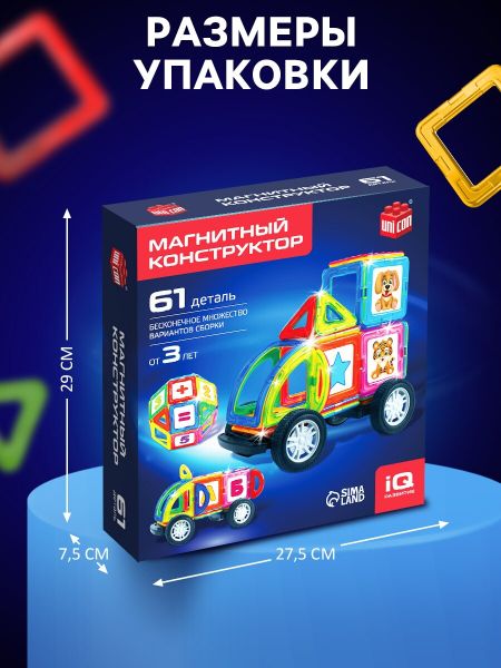 Магнитный конструктор Magical Magnet, 61 деталь, детали матовые. Конструктор Magical Magnet, это уникальный набор, позволит построить самые разнообразные модели! <b> Легко и весело собирать!</b> <ul> <li> Яркие и красочные деталию в видео геометрических фигур.</li> <li> Магниты легко притягиваются друг к другу, образую прочные конструкции.</li> <li> Развитие мелкой моторики, воображение и мышления.</li> </ul> Конструктор с магнитными деталями это отличный стартовый комплект — имеющихся деталей будет достаточно для постройки разнообразных моделей.