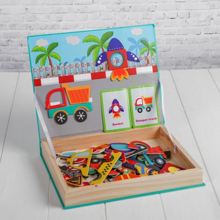 Магнитный конструктор «Транспорт» 3,5×26,5×20,5 см. Магнитный набор «Транспорт» — это компактная и увлекательная игра для детей, которая знакомит с миром машин и техники. С помощью магнитных элементов ребенок сможет создавать различные виды транспорта, развивая логику и мелкую моторику. Идеальный выбор для маленьких исследователей, которые любят конструировать и узнавать новое. <b> Особенности</b> <ul> <li> Магнитные элементы из картона и металла для безопасной и долговечной игры.</li> <li> Тематика набора включает различные виды транспорта.</li> <li> Подходит для детей от 3 лет, способствует развитию логики и координации.</li> <li> Простая и понятная игра, которая увлечет ребенка надолго.</li> </ul> Игра с магнитным конструктором помогает ребенку изучать виды транспорта, тренировать мелкую моторику и логическое мышление. Малыш учится комбинировать элементы, создавая свои уникальные модели, что развивает воображение и творческие способности. Набор станет отличным подарком для любознательных детей, которые любят играть и учиться одновременно.