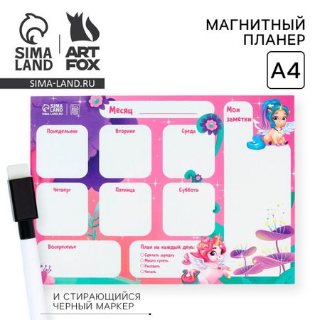Магнитный планер А4 и стирающийся маркер «Единорог». Организуйте свой день с комфортом! Планер станет вашим надежным ассистентом в решении повседневных задач как дома, так и в офисе. Удобная конструкция с магнитной лентой на задней стороне позволяет надежно закрепить на любой металлической поверхности, будь то холодильник или доска, а стирающийся маркер позволяет обновлять записи каждый день и дает возможность всегда иметь важные заметки под рукой и легко систематизировать информацию. Идеально подходит для: <ul> <li> Планирования задач</li> <li> Ведения заметок</li> <li> Создания списков</li> <li> Организации дел</li> </ul> Создайте свой идеальный день вместе с нашим планером!