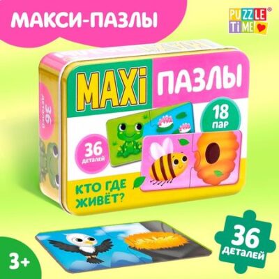 Макси-пазлы «Кто где живёт?» — это 36 деталей, из которых ребёнок соберёт 18 разных парных пазлов. В процессе малыш познакомится с забавными зверятами.Занятия с макси-пазлами помогут развить усидчивость, координацию и мелкую моторику рук, а также научат находить связь между частью и целым.Ребёнок не останется равнодушным к объёмным деталям пазла. Яркие картинки поднимут малышу настроение, а также поспособствуют развитию цветового и зрительного восприятия, внимательности и логического мышления.