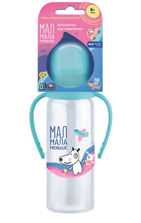 Мал Мала Меньше бутылочка для кормления с ручками и соской силиконовая +6мес. 250мл