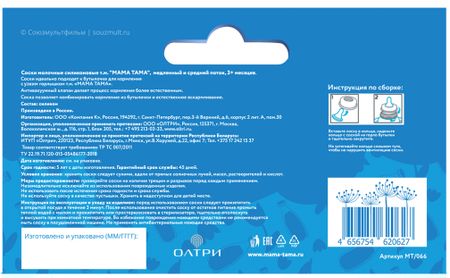 Мама тама соска для бутылочки классика силиконовая медленный и средний поток 3+ №2