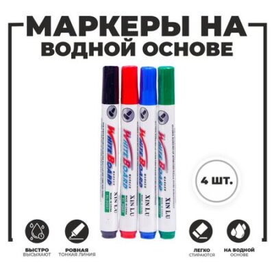 Маркер цветной на водной основе, набор 4 шт.. Находитесь в поиске маркеров для учебных или деловых презентаций на белой эмалевой доске? Маркеры цветные 4 цвета, водная основа, 4 шт. – подходящий выбор для самых успешных презентаций. Этот вариант включает в себя все достоинства обычных маркеров для досок – насыщенный цвет, ровную яркую линию, светоустойчивость. Однако водная основа имеет свои особые преимущества. Маркеры на такой основе приятно пахнут, быстро высыхают и легко стираются губкой. А самое главное – они абсолютно безвредны для здоровья, поэтому особенно популярны в детских садах и школах. Покупая такой маркер для магнитной доски с ощутимой выгодой, вы делаете правильный выбор.