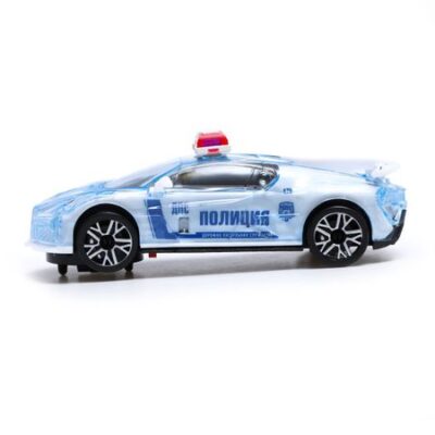 Машина «Crazy race. Полиция», инерционная, световые и звуковые эффекты, русская озвучка, работает от батареек, цвет белый. Машинка «Crazy race. Полиция» поможет ребенку почувствовать себя настоящим защитником и отправиться в невероятную погоню за самыми опасными преступниками. Яркий дизайн и проработанные элементы сделают игру реалистичнее, а звуковые и световые эффекты добавят динамики. Придумывайте самые закрученные сюжеты своих заездов! <b> Особенности</b> <ul> <li> Размер игрушки: 15,5 × 8 × 6 см.</li> <li> Тип механизма у машинки — самоходный. Благодаря специальному моторчику может двигаться во все стороны.</li> <li> Световые эффекты: внутри салона и капота и багажника горят лампочки красным, зеленым и синим цветами.</li> <li> Звуковые эффекты: машина воспроизводит звуки мотора и запуска, а также 6 фраз на русском языке.</li> <li> Игрушка работает от 3 батареек типоразмера АА (нет в комплекте).</li> </ul> <b> Играем с пользой</b> Машинка «Crazy race. Гонки» поможет ребенку почувствовать себя настоящим полицейским. Юный защитник увлекательно проведет время и разовьет важные навыки: мелкую моторику рук, координацию движений, а также фантазию и воображение.