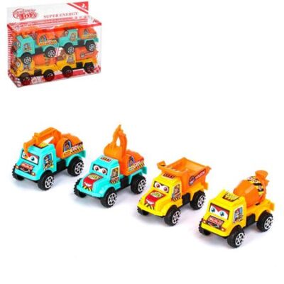 Машина инерционная «Стройтехника», набор 4 шт.. Набор строительной техники станет идеальным подарком для маленького любителя машин. В комплекте 4 яркие модели: бетоносмеситель, кран, самосвал и экскаватор. Каждая машина оснащена инерционным механизмом — разогнав ее в руках, можно запустить в движение! <strong> Особенности</strong> <ul> <li> В наборе представлены 4 популярные единицы строительной техники.</li> <li> Модели выполнены из прочного пластика, устойчивого к повседневным нагрузкам.</li> <li> Инерционный механизм и подвижные элементы делают игру более интерактивной и захватывающей.</li> <li> Рекомендовано для детей от 3 лет.</li> </ul> С таким набором ребенок сможет создать свой собственный строительный парк. Благодаря реалистичному дизайну машинок малыш легко погрузится в мир больших строек и грузовых перевозок. Инерционный механизм добавляет динамики игре, а возможность «запускать» каждую машину в движение сделает процесс еще увлекательнее.