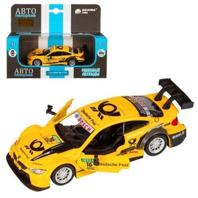 BMW M4 — автомобиль, разработанный немецким автоконцерном BMW в 2013 году. Металлическая лицензионная модель качественно окрашена и имеет инерционный механизм. Яркий спортивный дизайн, спойлер, обтекаемая форма кузова, спортивный обвес придают автомобилю эффектный внешний вид.ОсобенностиМасштаб модели — 1:44.Размер — 11,5 см.У автомобиля открываются двери и вращаются резиновые колёса.Лицензионная модель подойдёт для коллекционирования.Игра с машинкой развивает координацию движений, реакцию и мелкую моторику.