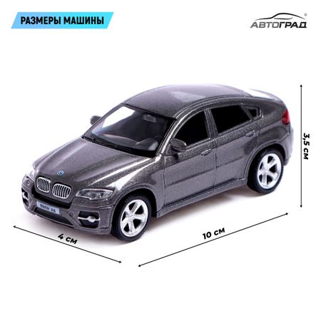 Машина металлическая BMW X6, 1:43, цвет серый. Металлическая модель автомобиля BMW X6 в масштабе 1:43 станет отличным подарком для юных автолюбителей и коллекционеров. Реалистичный дизайн, прочные материалы и компактный размер делают ее идеальным дополнением к игрушечному автопарку. <b> Преимущества</b> <ul> <li> Размер машинки: 10 × 4 × 3,5 см.</li> <li> Лицензионная модель с детализированным кузовом и фирменными элементами BMW.</li> <li> Корпус выполнен из металла с пластиковыми вставками, что делает игрушку прочной и долговечной.</li> <li> Оптимальный размер (масштаб 1:43) — удобно брать с собой и хранить в коллекции.</li> <li> Подходит для детей от 3 лет, безопасна для игры.</li> <li> Стильный серый цвет и классический дизайн подчеркнут премиальность автомобиля.</li> </ul> <b> Играем и развиваемся</b> Игрушечный BMW X6 помогает детям разыгрывать увлекательные сюжетные игры, развивать воображение и интерес к технике. Коллекционирование моделей автомобилей может стать увлекательным хобби и хорошим стартом для знакомства с миром автопрома.
