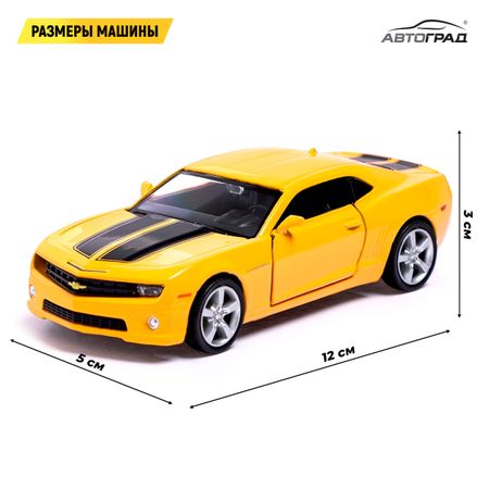 Машина металлическая CHEVROLET CAMARO, 1:32, открываются двери, инерция, цвет желтый. Коллекционная машина «Автоград» — детально проработанная лицензионная модель. Она дополнит игрушечный автопарк и станет прекрасным подарком для маленького любителя техники. <b> Особенности модели</b> <ul> <li> У машины открываются двери.</li> <li> Колеса прорезиненные.</li> <li> Кузов выполнен из металла. Все остальные элементы из пластика.</li> <li> Модель точно детализирована: выштамповка кузова, навесные элементы и др.</li> <li> Встроен инерционный механизм. Он позволяет задать транспорту скорость и дает возможность двигаться самостоятельно, по инерции.</li> <li> Масштаб модели — 1:32.</li> </ul> <b> Соберите всю коллекцию!</b> Линейка металлических автомобилей «Автоград» представлена широким ассортиментом лицензионных моделей: легковые, гоночные, внедорожники и ретро. <b> Увлекательно и полезно</b> Занимаясь коллекционированием, ребенок научится разбираться в марках и моделях автомобилей, будет развивать интерес к технике и знакомиться с устройством автомобиля.