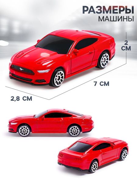 Машина металлическая FORD MUSTANG, 1:64, цвет красный. Коллекционная машина «Автоград» — детально проработанная лицензионная модель, она дополнит игрушечный автопарк и станет прекрасным подарком для маленького автолюбителя. <b> Особенности модели</b> <ul> <li> Кузов выполнен из металла. Все остальные элементы из пластика.</li> <li> Модель точно детализирована: выштамповка кузова, навесные элементы и др.</li> <li> Масштаб модели 1:64. Размер: 7 × 2,8 × 2 см.</li> </ul> <b> Соберите всю коллекцию!</b> Линейка металлических автомобилей «Автоград» представлена широким ассортиментом лицензионных моделей: легковые, гоночные, внедорожники и ретро. <b> Увлекательно и полезно</b> Занимаясь коллекционированием, ребенок научится разбираться в марках и моделях автомобилей, будет развивать интерес к технике и знакомиться с устройством автомобиля.