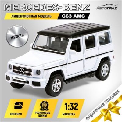 Машина металлическая MERCEDES-BENZ G63 AMG, 1:32, открываются двери, инерция, цвет белый