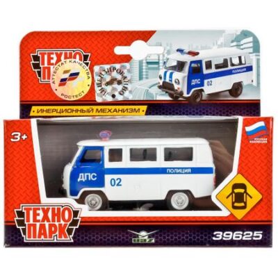 Машина металлическая Технопарк X600-H09021-R. Инерционная машина «Уаз 39625 Полиция ДПС» выполнена точной уменьшенной копией реального автомобиля в масштабе 1/50. Кузов модели выполнен из металла, реалистично исполненный салон из пластика. У коллекционной модели открываются передние двери, кузов имеет цвет белый-синий и крашен надписью «ДПС». Машинка непременно понравится каждому мальчишке, с ней можно придумать массу увлекательных сюжетов для игры со служебными машинками, и также игрушка может стать достойным украшением коллекции маленьких масштабных копий. Игрушка выполнена точной масштабной копией автомобиля Уаз 39625 – Полиция. Модель машинки выполнена из металла с добавлением некоторых элементов из качественного пластика. Масштаб исполнения копии 1/50. Игрушка выполнена с высоким уровнем детализации. На кузове установлены сигнальные маячки. Автомобиль имеет функциональные открывающиеся передние двери, что добавляет ей реалистичности. Сквозь прозрачные стекла можно рассмотреть подробно исполненный салон авто. Колеса автомобиля с резиновыми шинами, крутящиеся, благодаря чему игрушку можно катать по поверхности. Автомобиль снабжен инерционным механизмом, благодаря чему способен проехать большое расстояние после легкого толчка вперед. Мальчишки с удовольствием поиграют с моделью машины, совершенствуя мелкую моторику рук и развивая фантазию и воображение. Игрушка выполнена из качественного и прочного пластика и металла, прошедшего сертификацию для производства детских товаров. Длина машины: 9 см. Рекомендовано детям от 3-х лет.