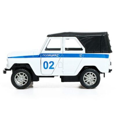 Машина металлическая УАЗ Hunter «Полиция», инерция, 1:32, свет и звук. Машина инерционная УАЗ Hunter «Полиция» — детально проработанный транспорт. Машинка дополнит игрушечный автопарк и станет прекрасным подарком для маленького любителя техники. <b> Особенности машинки:</b> <ol> <li> Игрушка выполнена из металла и пластика с использованием безопасных красителей.</li> <li> Встроен инерционный механизм. Привести транспорт в движение не составит труда: необходимо лишь отвести машинку назад и отпустить. Игрушка быстро наберет скорость и мгновенно достигнет намеченной цели.</li> <li> У техники открываются передние двери и светятся фары, совсем как у настоящего автомобиля.</li> <li> Издает звуки сигнала и работы двигателя.</li> <li> Масштаб модели — 1:32.</li> </ol> <b> Неоспоримая польза</b> Сюжетно-ролевые игры с игрушечным транспортом способствуют развитию воображения, мышления и эмоционального восприятия. Товар предназначен для детей старше 3 лет.