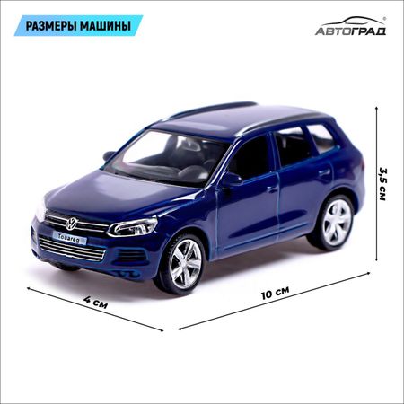 Машина металлическая VOLKSWAGEN TOUAREG, 1:43, цвет синий. Коллекционная машина «Автоград» — детально проработанная лицензионная модель. Она дополнит игрушечный автопарк и станет прекрасным подарком для маленького любителя техники. <b> Особенности модели</b> <ul> <li> Колеса прорезиненные.</li> <li> Кузов выполнен из металла. Все остальные элементы из пластика.</li> <li> Модель точно детализирована: выштамповка кузова, навесные элементы и др.</li> <li> Масштаб модели — 1:43.</li> </ul> <b> Соберите всю коллекцию!</b> Линейка металлических автомобилей «Автоград» представлена широким ассортиментом лицензионных моделей: легковые, гоночные, внедорожники и ретро. <b> Увлекательно и полезно</b> Занимаясь коллекционированием, ребенок научится разбираться в марках и моделях автомобилей, будет развивать интерес к технике и знакомиться с устройством автомобиля.