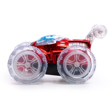 Машина-перевертыш радиоуправляемая «Трюк», работает от батареек, световые эффекты, цвет красный. Радиоуправляемая машина-перевертыш «Трюк» способна подстраиваться под любые дорожные условия! Ведь она может ездить на двух колесах, а еще у нее вращается передняя пара колес как по часовой стрелке, так и против. <b> Особенности радиоуправляемой машинки-перевертыша</b> <ul> <li> «Трюк» невозможно перевернуть, чтобы он не смог дальше ехать. Транспорт спроектирован так, что при переворачивании на крышу или бок машина сможет продолжить свой путь.</li> <li> Передняя пара колес крутится независимо от кузова машины.</li> <li> Во время игры колеса светятся разноцветными огоньками.</li> <li> Развивает скорость до 10 км/ч.</li> <li> Без задержки реагирует на все команды с пульта.</li> <li> Вы сможете контролировать точные движения техники вперед, назад, вправо, влево, а также делать развороты на 360֯.</li> <li> Машина работает от 3 батареек типоразмера AA (нет в комплекте).</li> <li> Дальность действия пульта: 25 м. Работает от 2 батареек типоразмера AA (нет в комплекте).</li> </ul>