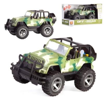 Вашему мальчику обязательно понравится эта машинка «Джип». При нажатии на каждую из 4 кнопок, расположенных в задней части кузова, включаются различные звуковые сигналы (машина заводится, предупреждающий звук (би-би), машина в движении, сработала сигнализация) и фары при этом мигают. Благодаря инерционному механизму машинка способна быстро ездить.Для работы требуются 3 батарейки типа «AG13/LR44» (в комплекте).
