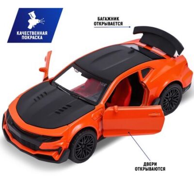 Машинка металлическая «Спорт», инерция, открываются двери, багажник, цвет оранжевый. Металлическая машина «Автоград» — детально проработанная модель. Она дополнит игрушечный автопарк и станет прекрасным подарком для маленького любителя техники. <b> Особенности модели</b> <ul> <li> Кузов выполнен из металла. Все остальные элементы из пластика.</li> <li> Встроен инерционный механизм. Он позволяет задать транспорту скорость и дает возможность двигаться самостоятельно, по инерции.</li> <li> Модель точно детализирована: выштамповка кузова, навесные элементы и др.</li> <li> Размер модели: 12 × 5 × 3,5 см.</li> <li> Открываются двери.</li> <li> Предназначена для детей старше 3 лет.</li> </ul> <b> Соберите всю коллекцию!</b> Линейка металлических моделей «Автоград» представлена широким ассортиментом транспортных средств: автомобили, автобусы, грузовики, спецтехника и т.д.