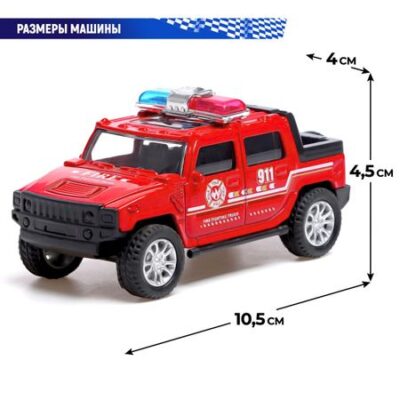 Машинка металлическая «Пожарная служба», масштаб 1:43, инерция. Металлическая машина «Пожарная служба» мчится на важное задание. Благодаря своей компактности легковой автомобиль быстро домчится до пункта назначения. Большой кузов позволит доставить противопожарное оборудование, что поможет быстрее спасти игрушечный город. <b> Особенности</b> <ul> <li> Масштаб модели — 1:43.</li> <li> Размер: 10,5 × 4,5× 4 см.</li> <li> Машина «Пожарная служба» имеет металлический корпус, это делает ее устойчивой к внешним воздействиям и долговечной.</li> <li> Машина «Пожарная служба» имеет инерционный механизм. Чтобы привести машину в движение, достаточно ее толкнуть. Игрушка мгновенно наберет скорость и поедет под действием инерционного механизма.</li> <li> Автомобиль предназначен для детей старше 3 лет.</li> </ul> <b> Играем с пользой</b> Металлическая машина «Пожарная служба» не только поможет ребенку спасти город от страшного пожара, но и поспособствует развитию важных навыков. В процессе игры ребенок улучшит воображение, координацию движений, а также пространственное мышление и скорость реакции.