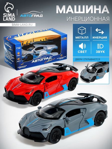 Металлическая машина «Автоград» — детально проработанная модель. Она дополнит игрушечный автопарк и станет прекрасным подарком для маленького любителя техники.Особенности моделиКузов выполнен из металла. Все остальные элементы из пластика.Встроен инерционный механизм. Он позволяет задать транспорту скорость и даёт возможность двигаться самостоятельно, по инерции.Во время игры у машинки светятся передние фары.Воспроизводит 1 мелодию и звуки запуска двигателя, набора скорости и сигнала.Модель точно детализирована: выштамповка кузова, навесные элементы и др.Масштаб модели — 1:32.У автомобиля открываются передние двери, совсем как у настоящего транспорта.Световые и звуковые эффекты работают от 3 батареек типоразмера LR41 (в комплекте).Предназначена для детей старше 3 лет.Соберите всю коллекцию!Линейка металлических моделей «Автоград» представлена широким ассортиментом транспортных средств: автомобили, автобусы, грузовики, спецтехника и т.д.
