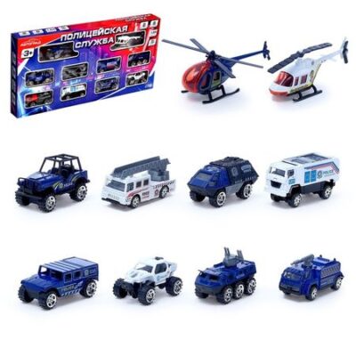 Спецслужбы на страже порядка! Набор металлических машинок «Спецслужбы» – это десять ярких и детализированных моделей, которые перенесут вашего ребёнка в мир захватывающих операций и спасательных миссий. Прочный металл и разнообразие техники делают этот набор идеальным выбором для маленького любителя машин.Десять машинок в наборе: в комплект входят 2 вертолёта, внедорожники, броневики и другая спецтехника. Все модели выполнены в масштабе 1/64 и изготовлены из качественного металла. Яркие цвета и детализированный дизайн привлекают внимание ребёнка, а компактные размеры делают игру удобной как дома, так и на улице.Прочный металл и долговечность: игрушки изготовлены из металла, что делает их устойчивыми к повреждениям и износу даже при активной игре. Гладкая поверхность и отсутствие острых углов обеспечивают безопасность для детей.Идеально для ролевых игр: набор создан для мальчиков, которые любят придумывать истории о героях и преступниках. Разнообразие техники позволяет организовать полноценные сюжетно-ролевые игры: погони, спасательные операции и задержание преступников.Подарок для маленького героя: этот набор станет идеальным выбором для ребёнка, который мечтает стать полицейским или просто обожает спецтехнику. Десять машинок – это целый автопарк для борьбы с преступностью. Подарите своему малышу возможность создавать свои собственные истории и стать героем своих приключений!