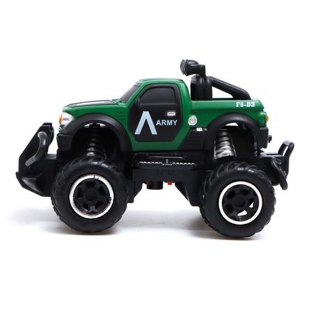 Машинка на пульте управления «Джип. Армия», работает от батареек, цвет зеленый. Радиоуправляемая машина — то, что нужно малышу для оттачивания навыков езды и проведения захватывающих скоростных соревнований. Ребенок без труда научится управлять автомобилем. <b> Особенности</b> Машина понравится малышу своим реалистичным дизайном и функциональными особенностями. Автомобиль мгновенно реагирует на команды с пульта и маневренно обходит все препятствия. Ребенок будет контролировать движение техники вперед, назад, вправо, влево и устроит настоящие скоростные соревнования. <b> Играем с пользой</b> В процессе развлечения малыш разовьет координацию движений, пространственное и образное мышление, воображение, мелкую моторику и эмоциональное восприятие.