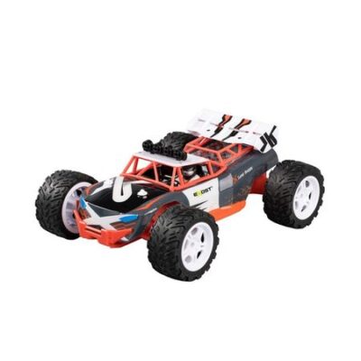 Для любителей радиоуправляемых машин компания Silverlit предложила еще один интересный вариант – спортивный автомобиль на больших колесах с рельефными протекторами. Внедорожник имеет стильный дизайн, в кабине находится фигурка гонщика в шлеме. Мощные колеса на пластиковых амортизаторах хорошо «держат» трассу и преодолевают препятствия. Машинка очень маневренная, быстро разгоняется до максимальной скорости. Автомобиль работает от аккумулятора 500mAh, 4.8V Ni-MH, который можно заряжать с помощью адаптера. Пульт управления в форме пистолета удобен в эксплуатации. Нажатием курка газа регулируется движение вперед-назад. Расположенное справа колесико мягко управляет поворотами. Пульт действует в радиусе 20м и работает на 2 батарейках типа АА. При изготовлении игрушки использовался прочный, стойкий к ударам пластик. Некоторые детали машины (приводы, держатели рычагов) выполнены из металла. Спортивный внедорожник отлично переносит активную езду по различным поверхностям.