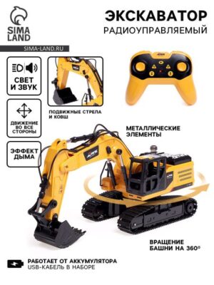 Машинка радиоуправляемая «Стройка», экскаватор, металлический ковш, аккумулятор, световые, звуковые и дымовые эффекты. Экскаватор на радиоуправлении «Стройка» — это захватывающая игрушка для юных строителей, которая подарит много радости и увлекательных моментов в игре. Этот спецтранспорт привлекает своей реалистичностью и множеством функций, имитирующих работу настоящей строительной техники. <b> Преимущества</b> <ul> <li> Металлический ковш для более реалистичной игры и долговечности.</li> <li> Дымовые эффекты создают впечатление настоящей стройки.</li> <li> Световые и звуковые эффекты делают процесс управления интереснее и динамичнее.</li> <li> Максимальная скорость 7 км/ч — достаточно, чтобы ощутить движение спецтехники в игре.</li> <li> Полный радиоуправляемый контроль — экскаватор движется во всех направлениях, что открывает простор для фантазии в игре.</li> </ul> <b> Особенности</b> <ul> <li> Игрушка подходит для детей от 6 лет, благодаря простому управлению и безопасным материалам.</li> <li> Работает на аккумуляторе АКБ 14500/500 mAh3,7v1,85Wh, что обеспечивает длительное время игры без необходимости частой смены батареек.</li> <li> Пульт управления работает от батареек AA, легко доступных и простых в замене.</li> <li> Корпус выполнен из прочного пластика, а ковш — из металла, поэтому экскаватор прочный и долговечный.</li> <li> Экскаватор относится к категории наземного спецтранспорта и создан для реалистичных игр про стройку.</li> <li> Демонстрационная игра действия со светом и звуком.</li> <li> Игрушка двигается вперед , назад, вправо, влево, есть.вращение поворотного привода, а также мощное движение крана.</li> <li> Издает звук двигателя. а также дым с синим светодиодом (пар).</li> <li> Колеса прорезинены.</li> </ul> <b> Развитие навыков через игру</b> Управление экскаватором способствует развитию у ребенка моторики, координации движений и пространственного мышления. Благодаря возможности контролировать технику на расстоянии, игра станет не только увлекательной, но и полезной для развития технических навыков. <b> Для кого подойдет</b> Экскаватор отлично подойдет детям, увлеченным строительной техникой и любящим активные игры. Этот мощный радиоуправляемый транспорт станет прекрасным подарком на любой праздник или как приятный сюрприз.