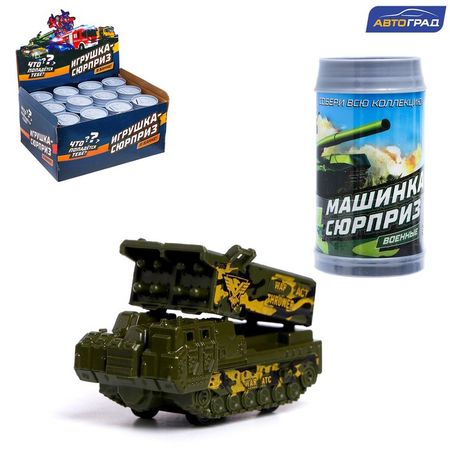 Машинка-сюрприз «Военные» перенесёт ребёнка в мир удивительных сражений и поможет почувствовать себя настоящим водителем служебной техники. Яркий дизайн и проработанные элементы привлекут внимание ребёнка, сделают игру реалистичной и интересной.ОсобенностиИнерционный механизм: чтобы привести машину в движение, откатите её назад и отпустите. Грузовик поедет под действием инерционного механизма, быстро разовьёт скорость и достигнет намеченной цели.Машинка-сюрприз изготовлена из высококачественного нетоксичного пластика, который полностью безопасен для детей.Машины без механизма. Дополнительных функций нет. Поэтому ничто не будет ограничивать фантазию и игровые сюжеты малыша.Играем с пользойМашинка-сюрприз «Военные» не только поможет малышу стать победителем любого сражения, но и поспособствует развитию важных навыков. Машинка-сюрприз улучшит воображение, мелкую моторику рук, пространственное мышление, а также познакомит ребёнка со служебной техникой.