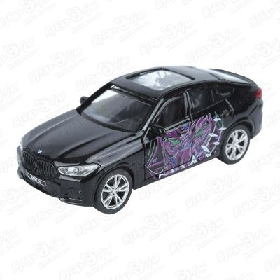 Машинка ТЕХНОПАРК BMW X6 Черная пантера металлическая открываются двери и багажник