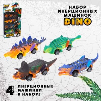 Машинки инерционные DINO, набор 4 шт.. Набор инерционных машинок DINO — это отличный вариант игрушек для детей от 3 лет. В комплект входят 4 машинки, каждая из которых приводится в движение инерционным механизмом. Просто толкните машинку вперед, и она поедет самостоятельно, что увлечет ребенка в увлекательную игру. Инерционные машинки помогают развивать мелкую моторику и координацию движений у малышей. <b> Особенности набора</b> <ul> <li> Машинки изготовлены из прочного пластика, что обеспечивает их долговечность даже при активных играх.</li> <li> Размер одной машинки: 13 × 3,5 × 4 см.</li> <li> Инерционный механизм легко запускается — достаточно одного толчка.</li> <li> Набор подходит для детей от 3 лет, что делает его безопасным и полезным для раннего развития.</li> </ul> <b> Весело и увлекательно</b> Игры с инерционными машинками разнообразят досуг ребенка, а также способствуют развитию воображения и навыков взаимодействия с предметами. Набор станет отличным подарком для малышей, которые любят активные игры.
