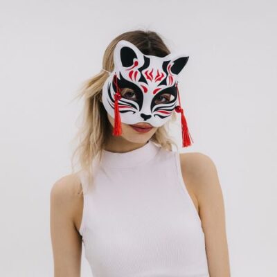 Маска карнавальная «Кицунэ», черно-красный. Познакомьтесь с карнавальной маской «Кицунэ» черно-красного цвета, которая воплощает дух японского искусства. Эта маска, украшенная изящными подвесками, станет выразительным акцентом вашего костюма и привлечет внимание на любом мероприятии. <b> Детали маски</b> <ul> <li> Изготовлена из пластика, что обеспечивает ее прочность и удобство при ношении.</li> <li> Яркий красный цвет маски символизирует удачу и защиту, а подвески добавляют ей элегантности.</li> <li> Резинка позволяет маске надежно фиксироваться на лице, не вызывая дискомфорта.</li> <li> Маска подходит как для взрослых, так и для детей благодаря универсальному размеру.</li> <li> Идеальна для фотосессий, косплея и создания ярких образов в социальных сетях.</li> <li> Отличный выбор для тех, кто хочет добавить в свой образ нотку таинственности и традиционного японского стиля.</li> </ul> В серии масок представлены и другие персонажи. Соберите их всех!