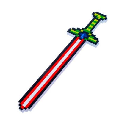 Меч «Пиксель», работает от батареек, свет и звук. Меч «Пиксель» – для настоящих любителей виртуальных приключений! Этот стильный меч с дизайном в стиле пиксельной графики станет отличным подарком для маленьких поклонников видеоигр. Реалистичные световые и звуковые эффекты делают игру яркой и увлекательной, погружая ребенка в мир фантазий и приключений. <strong> Особенности меча</strong> <ul> <li> Подходит для детей от 3 лет.</li> <li> Световые эффекты: меч ярко светится, добавляя игре зрелищности.</li> <li> Звуковые эффекты: сопровождают движения, делая игру еще более захватывающей.</li> <li> Работает от 3 батареек типа АА (не входят в комплект).</li> <li> Легкий и удобный: идеально подходит для маленьких рук.</li> <li> Выполнен из прочного и безопасного пластика.</li> </ul> <strong> Игра</strong> <strong> и польза</strong> <ul> <li> Развивает фантазию, воображение и координацию движений.</li> <li> Вдохновляет ребенка на создание увлекательных игровых сценариев.</li> <li> Подходит для активного времяпрепровождения как в одиночку, так и в компании друзей.</li> </ul> Меч «Пиксель» станет любимым аксессуаром для игр, вдохновленных любимыми видеоиграми, и подарит ребенку море ярких эмоций и веселья!