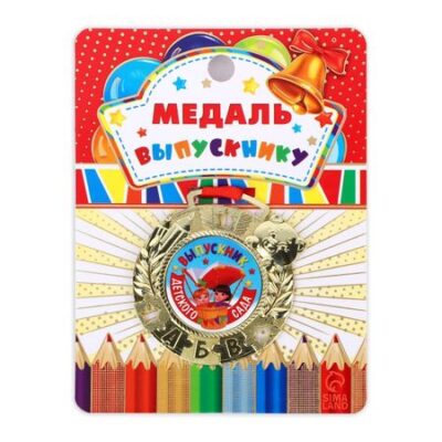 Медаль детская на выпускной «Выпускник детского сада», на ленте, золото, металл, d=5.5 см. <b> Медаль детская на выпускной «Выпускник детского сада», на ленте, золото, металл, d=5.5 см</b> Выпускной – это важное событие для ребенка. Медаль на ленте является прекрасной наградой и запоминающимся подарком, который подчеркнет значимость мероприятия. — размер медали 5,1 х 5,5 см.; — диаметр рисунка 3 см.; — длина ленты (в сложенном виде) 40 см.