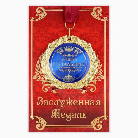 Медаль на открытке «Лучший начальник», d=7 см.. Медаль на открытке «Лучший начальник», d=7 см. Создана формула идеального поздравления: классическая форма и праздничное содержание. Оригинальная медаль – отличная награда для самых достойных представителей своего времени. Эксклюзивный сувенир станет достойным украшением вечера и поможет создать незабываемое поздравление! Медаль в подарочной открытке изготовлена из золотистого металла, идет в комплекте с лентой, упакована в открытку с торжественным приветствием для адресата. Удивляйте и награждайте!