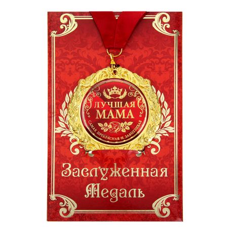 Медаль на открытке на День матери «Лучшая мама», d=7 см. Медаль на открытке на День матери «Лучшая мама», d=7 см Создана формула идеального поздравления: классическая форма и праздничное содержание. Оригинальная медаль – отличная награда для самых достойных представителей своего времени. Эксклюзивный сувенир станет достойным украшением вечера и поможет создать незабываемое поздравление! Медаль в подарочной открытке изготовлена из золотистого металла, идет в комплекте с лентой, упакована в открытку с торжественным приветствием для адресата. Удивляйте и награждайте!
