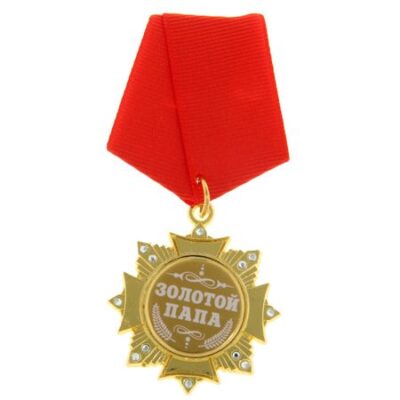Медаль орден на подложке «Золотой папа», 4,7 х 10 см. Орден — почетный знак отличия, которым награждают за особые достижения и заслуги. Получить его в подарок от родных и близких особенно приятно. Награда изготовлена из металла, украшена стразами и вставкой с глянцевым акриловым покрытием, которое предотвращает потускнение и приятно на ощупь. Яркая колодка дополнена булавкой, чтобы вы могли закрепить сувенир на одежде. На подарочной подложке написаны душевные слова в адрес получателя.