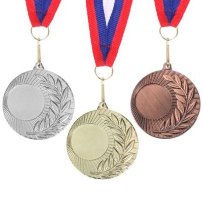 Медаль под нанесение 021, d= 5 см. Цвет золото. С лентой. <b> Медаль</b> — знак отличия, которым награждают самых достойных. Она вручается лишь тем, кто проявил настойчивость и волю к победе. Каждое достижение — это важное событие, которое должно остаться в памяти на долгие годы. Любое спортивное состязание, профессиональное или среди любителей, любое корпоративное мероприятие — отличный повод для того, чтобы отметить лучших из лучших. Эту награду вы сможете дополнить персональной гравировкой или корпоративной символикой.