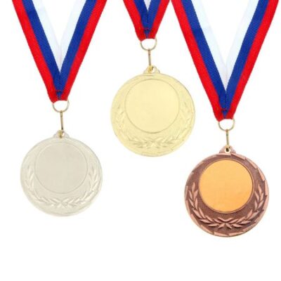 Медаль под нанесение 034, d= 4 см. Цвет золото. С лентой. <b> Медаль</b> — знак отличия, которым награждают самых достойных. Она вручается лишь тем, кто проявил настойчивость и волю к победе. Каждое достижение — это важное событие, которое должно остаться в памяти на долгие годы. Любое спортивное состязание, профессиональное или среди любителей, любое корпоративное мероприятие — отличный повод для того, чтобы отметить лучших из лучших. Эту награду вы сможете дополнить персональной гравировкой или корпоративной символикой.