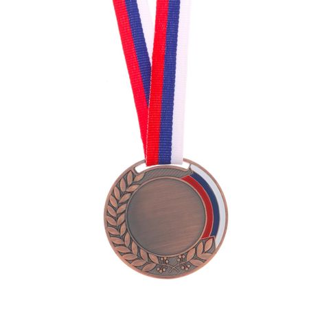 Медаль под нанесение «Лавры», ⌀ 5 см., триколор. Цвет бронз. С лентой. <b> Медаль</b> — знак отличия, которым награждают самых достойных. Она вручается лишь тем, кто проявил настойчивость и волю к победе. Каждое достижение — это важное событие, которое должно остаться в памяти на долгие годы. Любое спортивное состязание, профессиональное или среди любителей, любое корпоративное мероприятие — отличный повод для того, чтобы отметить лучших из лучших.